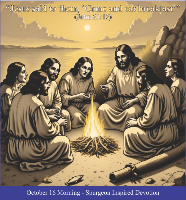 Christ likely ate hundreds of breakfasts with His  disciples, but this would be His last meal with them on Earth. After the meal, Christ,  who recently gave His life for the glory of God, told the Apostle Peter he  would suffer a similar fate. In fact, all the Apostles at that breakfast were  to die as martyrs except John, who according to church tradition, miraculously survived  being boiled in oil.