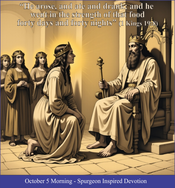 The prophet Elijah was given food and water by an  angel to prepare him for a journey  of 40  days and 40 nights. Christ gave His disciples breakfast on the shore of the Sea  of Tiberius to prepare them for His final commission. Queen Esther of Persia was  raised to her exalted position so she could save the Jews from destruction.