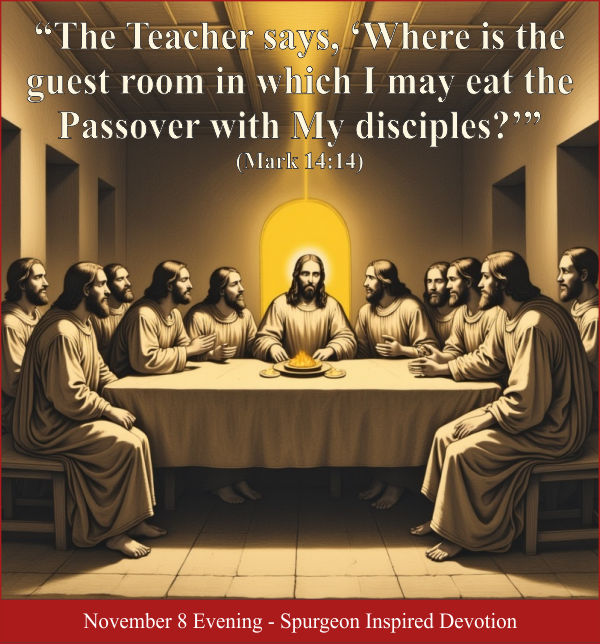 “The Teacher says, ‘Where is the guest room in which I may eat the Passover with My disciples?’” (Mark 14:14)
