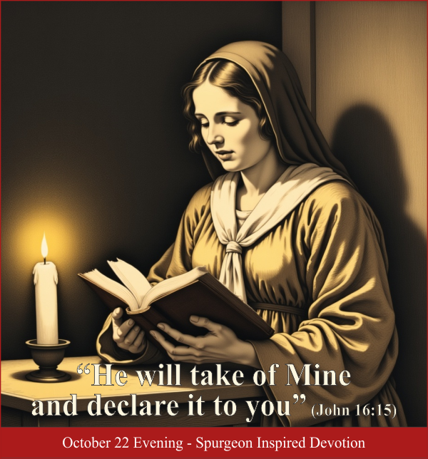 The  Holy Spirit of truth takes of the things of Christ, and weaves them into the individual  tapestry of our lives. Christ hasn’t concealed His medicine, or placed it beyond  our reach. No, by the indwelling Holy Spirit, the apothecary of Heaven is at our  disposal.
