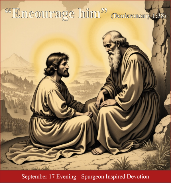 God tells Moses to encourage Joshua. He didn’t tell  an angel to do it. An angel wouldn’t have been as good a messenger as Moses. 1)  An angel would have scared Joshua, unnecessarily. 2) An angel wouldn’t have  been able to appreciate Joshua’s fears. 3) An angel wouldn’t have been able to  sympathize with all Joshua would have to go through: the difficulties of the journey,  the fiery serpents, and the stiff-necked multitude.